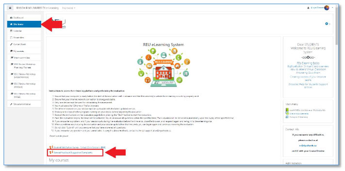 ELearning portal (elearning.riyadh.edu.sa) REU University contains training material and resources for Faculty to help them create course material, conduct virtual classroom session, create assignment, surveys, quizzes, etc. Also the eLearning portal contains the training material for students to help them attempt course activities.